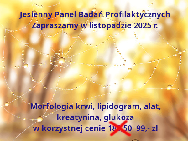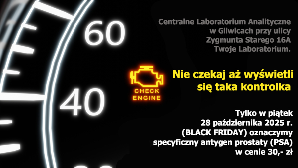 W piątek 28 listopada 2025 r. (Black Friday) będziemy oznaczać specyficzny antygen prostaty (PSA) w cenie 30,- zł. Zapraszamy.